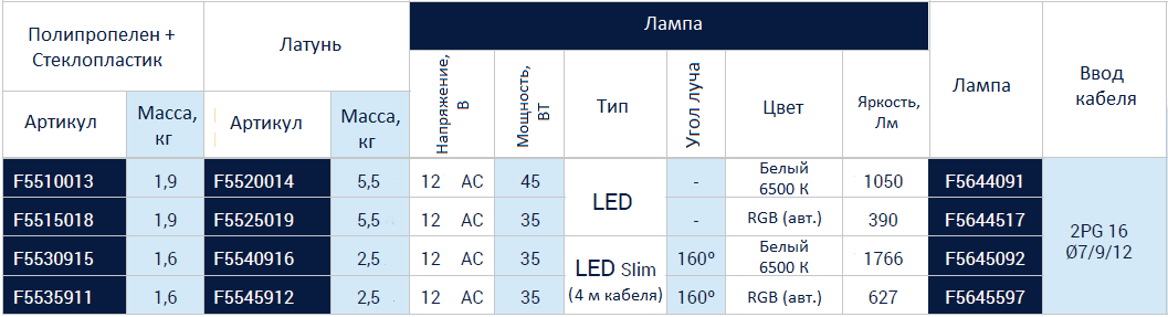 Подводный светильник PAR 56 lightfixture, 160°, 12V.AC, 35W, LED Slim, RGB